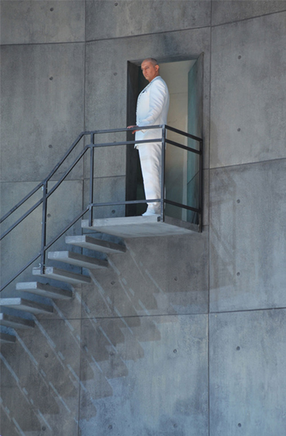 Ein Riesenzylinder, von innen gesehen, den zweiten Teil des Abends. Beklemmung macht sich breit, ein Gefühl von Kälte, Einsam- und Ausweglosigkeit.