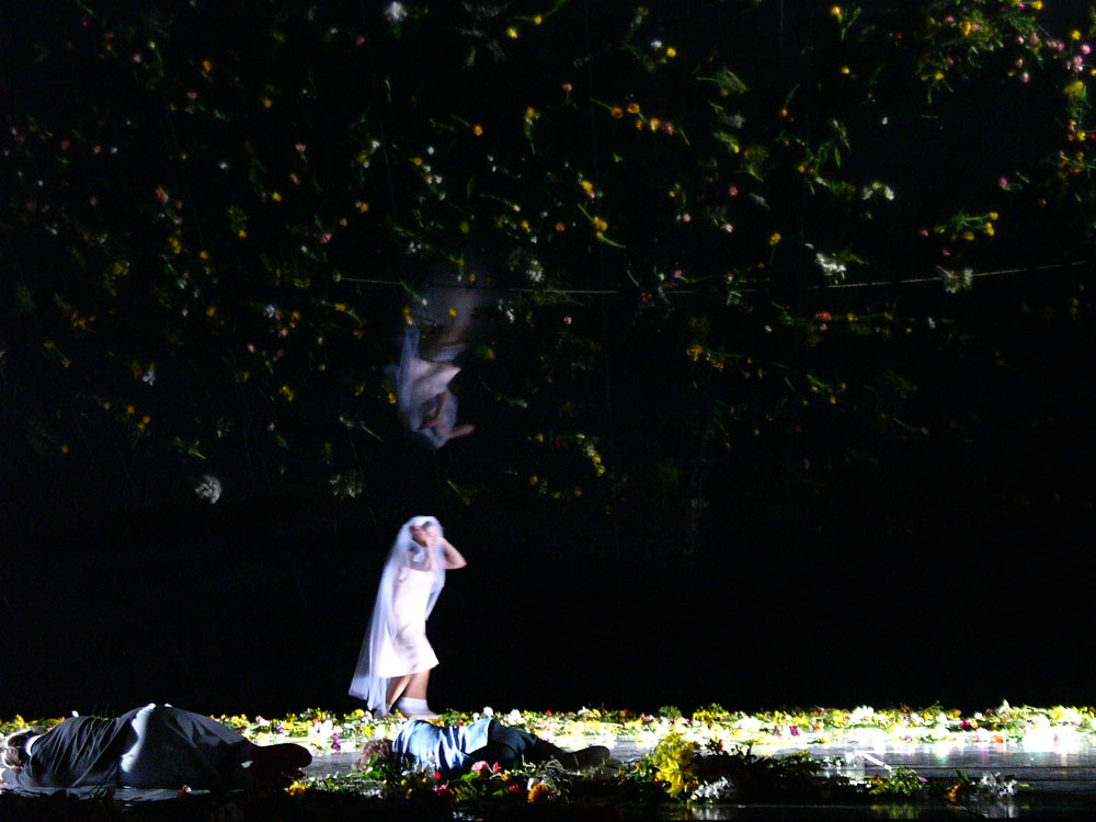 ... im Spiegel scheint ein Blumenhimmel aufzuziehen, und dann zeigt sich das Bild eines Blumenmeers. Es wirt ein Blumengrab sein ... Diese Aufführung ist eine für die unteren eintausend – wenn überhaupt ... Tranen im Publikum, nicht nur verstohlene, und Ovationen.