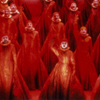 Die Adligen – nur Männer –tragen einheitliche Kleidung: blutrote ,lange Mantel, sie sind eingebettet in die Zwangsjacke des herzoglichen Palastes und alle auf dasselbe Ziel ausgerichtet. Später, wenn die Abrechnung rundum Rigoletto sich Vollzieht, haben sich die Höflinge in vollkommen schwarze Lackaffen auf blinkenden Stiefeln mit Stockelabsatzen de geändert, wozu die weißen Kragen stark kontrastieren. Die abschreckende Wirkung lasst dadurch nicht nach. Vor diesem (un)menschlichen Hintergrund vollzieht sich das Drama zwischen den drei Hauptfiguren. Financieel Dagblad, Matthijs Smits