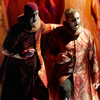 The focus shifted from individually disturbed behaviour to the communal decadence of the ducal court. Their clothes (magnificent costumes by the British designer Sandy Powell) were identical. These creatures seemed dehumanized, reduced to the level of parasites who feed on decay. These terrifying figures were present even in the final act, hovering vulture-like high above the stage.